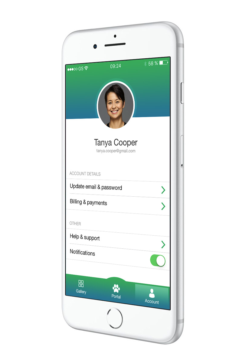 PetPortal is a mobile app concept which gives pet owners an opportunity to check in on their pets while away from home. Take photos or video, dispense treats, and speak with your pets using the wi-fi-enabled hub.