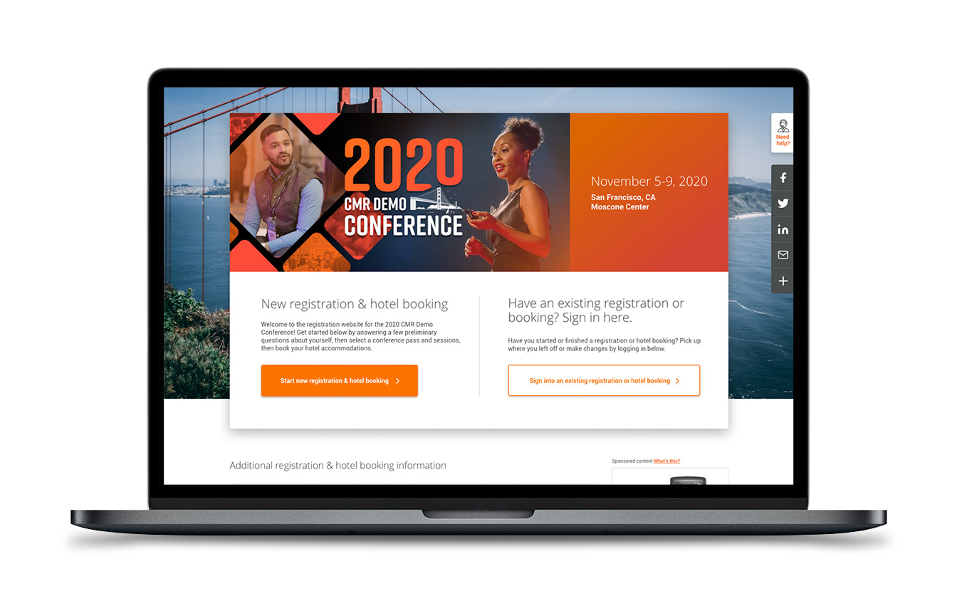 At CMR, I was tasked with a full UX/UI update on an old (but impressively functional) online registration platform. The goal here was to create a beautiful, lightweight, modern web experience so conference attendees could navigate registration and checkout with ease.