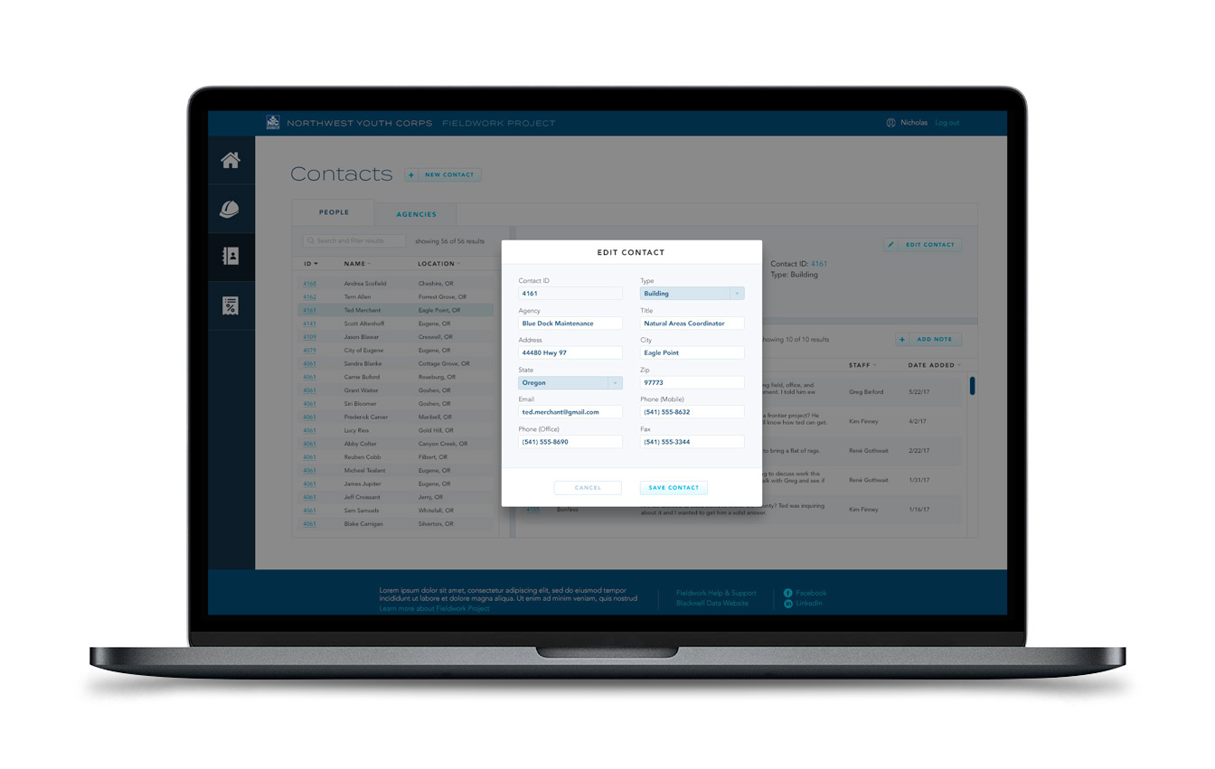 Developed by Blackwell Data, Fieldwork Project software aims to support Youth Corps organizations by pulling all their project data (contact, agreements, work records, scheduling, and notes) into a single, cloud-based repository to save users the time and frustration spent fumbling with manual and disparate systems.