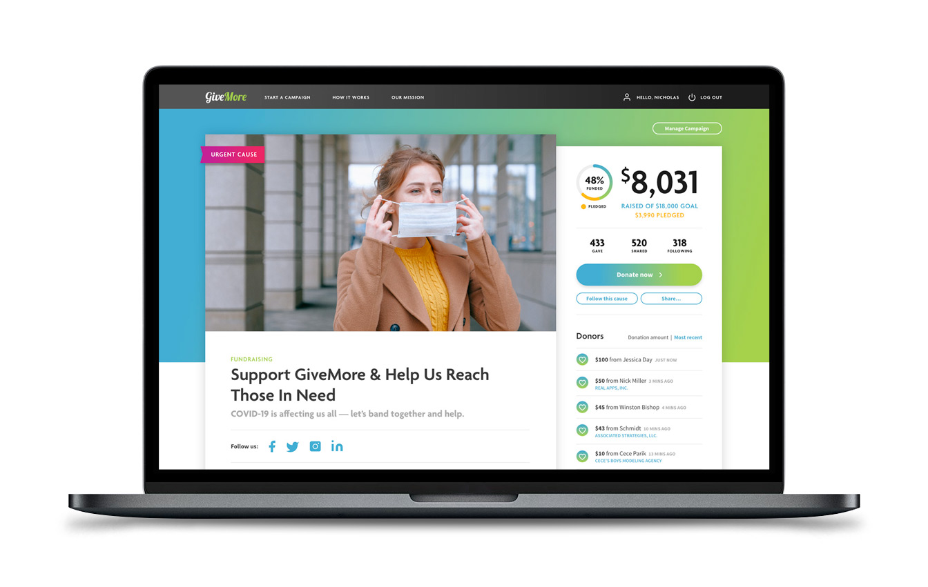 Developed by Nathan Gustafson and Krell, GiveMore takes social giving to the next level. This innovative platform helps individuals and organizations raise funds more effectively by providing tools and services that enable charitable giving, matching donations, and the socialization of causes.